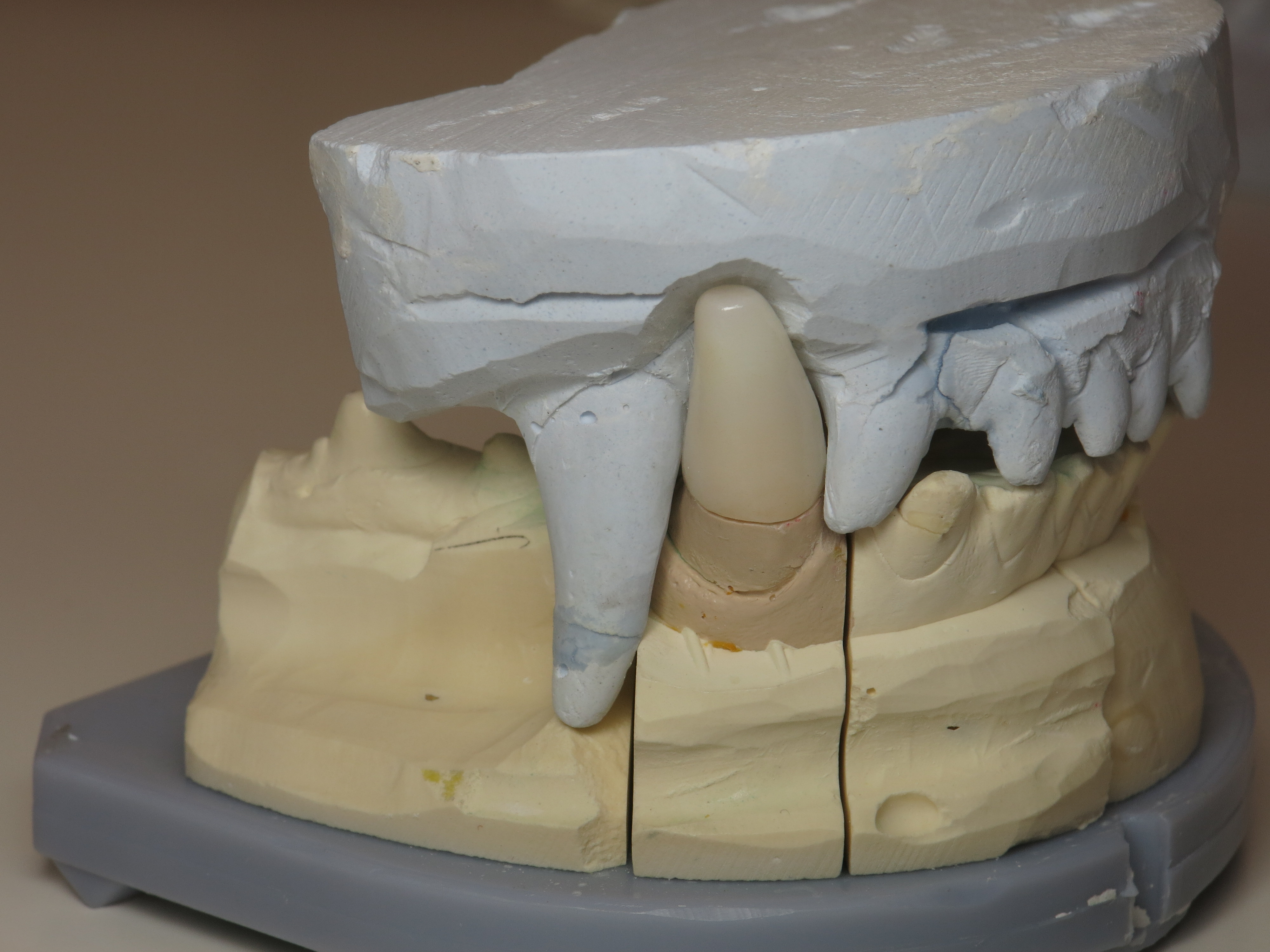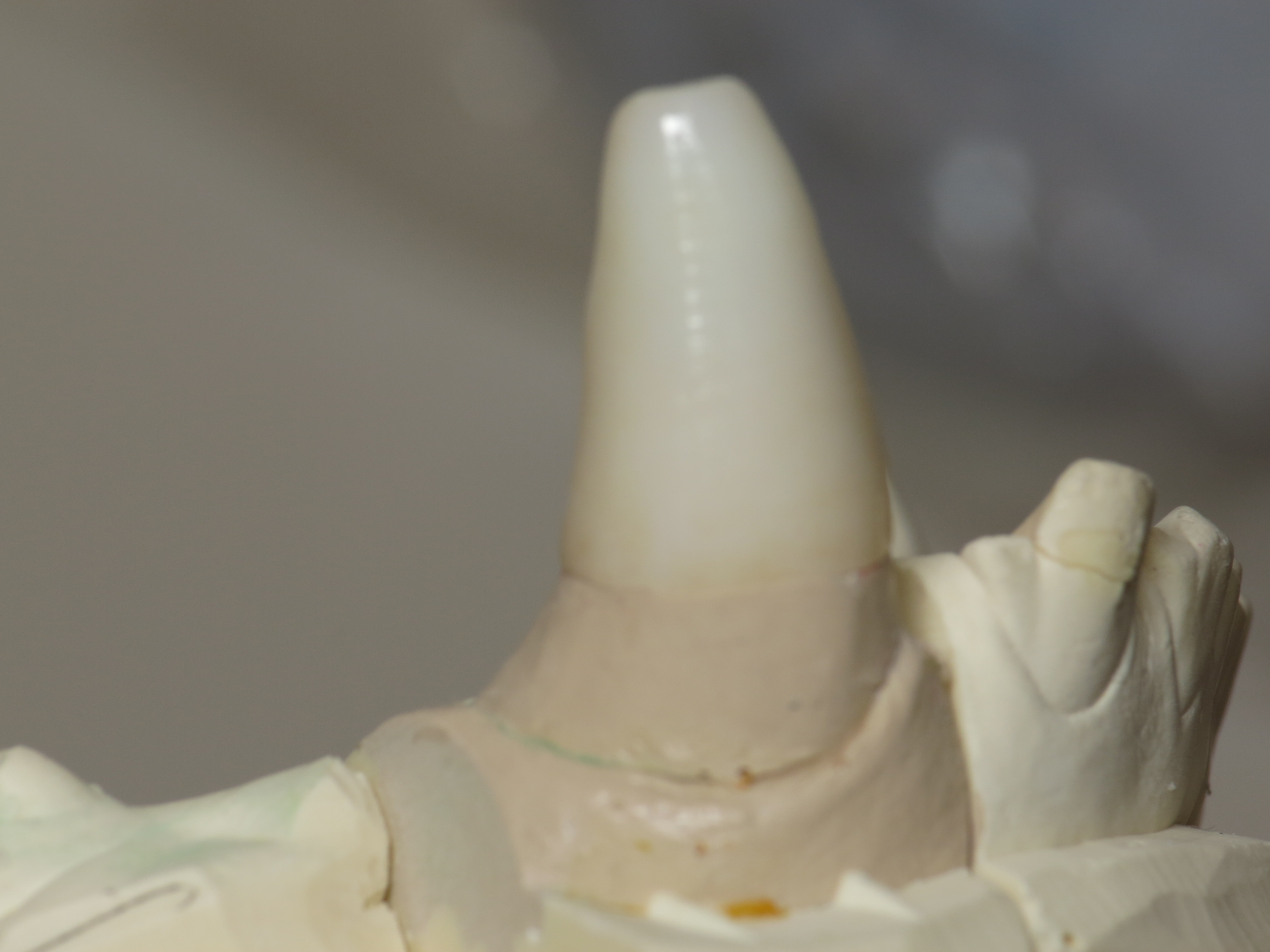 Réalisation du croc sous forme d’endocouronne en Zircone pleine maquillée FORMA® MonoZir®