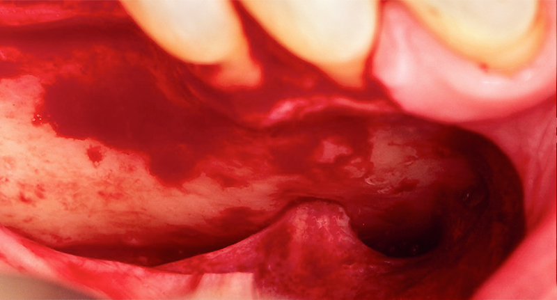 Fig. 03 : compte tenu du gain volumique, il va falloir libérer le lambeau vestibulaire et lingual.