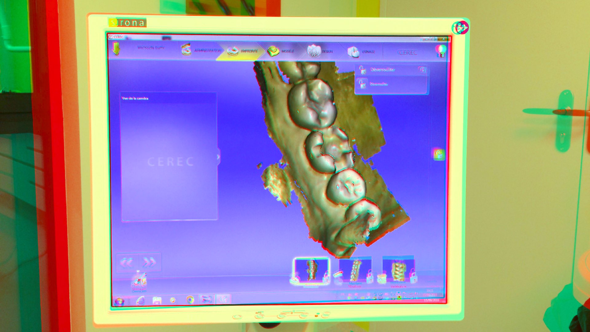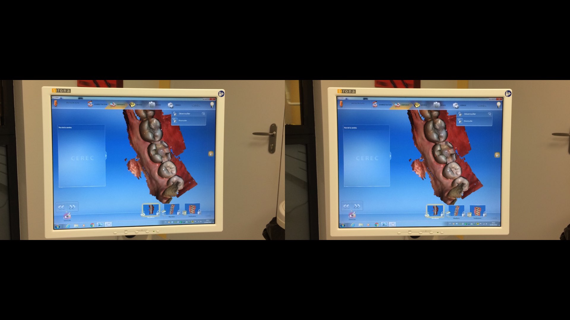 L’empreinte optique est plébiscitée par rapport à l’empreinte physico-chimique, plus personne ne veut revenir en arrière que ce soit le patient ou le praticien. Finie la sensation de nausée avec des matériaux au goût douteux, la prise d’empreinte se fait désormais avec une caméra intrabuccale (figure 3).