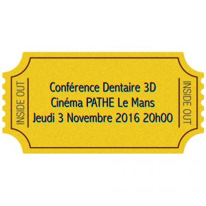 Assistez à la première Conférence Dentaire en 3D au Monde : Jeudi 3 Novembre 2016 20h au Cinéma PATHE Le Mans. Inscriptions sur www.DD3D.fr