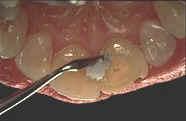 - après avoir obtenu le résultat souhaité, placer un mélange d’hydroxyde de calcium + eau distillée,à consistance pâteuse, dans la chambre pulpaire pour une durée d’environ 15 jours.