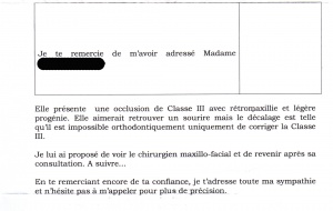 La patiente se dirige alors vers le second orthodontiste en spécifiant son refus de toute chirurgie.