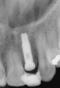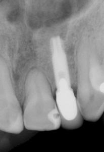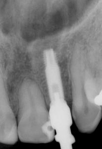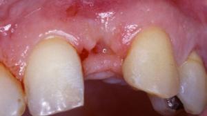 Patient de 45 ans présentant une absence de la 22 (racine fracturée). L’extraction a été faite il y a un mois dans un service d’urgence.