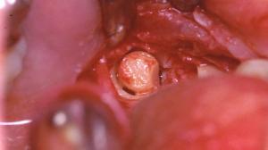 Dans ce cas, l’immobilisation du greffon est faite par friction et clavetage entre les corticales résiduelles après sculpture. Cette technique n’est pas reproductible.