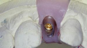 Présentation du cas: Patient de 45 ans présentant une absence de la 22 (racine fracturée). L’extraction a été faite il y a un mois dans un service d’urgence. On se propose ici de poser un implant. L’examen du scanner montre qu’une greffe osseuse sera nécessaire.