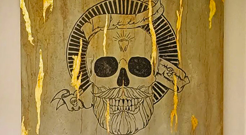 Dans le domaine de la prothèse dentaire, les noms des laboratoires ont souvent tendance à jouer sur des jeux de mots avec les dents ou à mettre en avant le nom du propriétaire. Cependant, en raison de mon penchant marqué pour l’anticonformisme, j’ai délibérément choisi de m’éloigner de ce schéma. Avec un logo représentant une version crânienne de moi-même, arborant une barbe et orné de symboles, je me suis créé une identité visuelle qui tranche résolument avec les conventions habituelles.